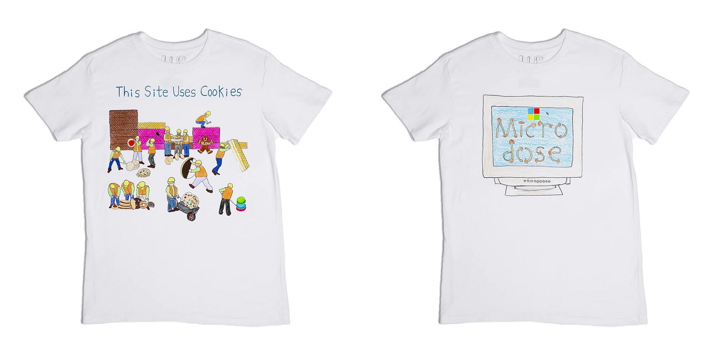Unfortunate Portrait tee (“This site uses cookies”, “Microdose”), $78 (35% off sitewide for Black Friday, so actually ~$50): No description needed.
