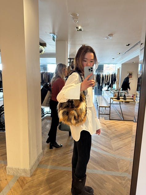 Miu Miu Brown Suede Boots: Favorite boots we own (says a lot bc boots are our shoe of choice for ALL seasons!!!). Flattering bc it cuts at just the right part of the calf. The EASIEST shoe to style (shorts, skirts, dresses, trousers, jeans, literally everything). Have never received so many compliments. They were sold out everywhere for a while, but more retailers stocked them this season. One of Chloe’s best friends got the same boots because they are just thatttt good. Procured them early before the frenzy hit.
