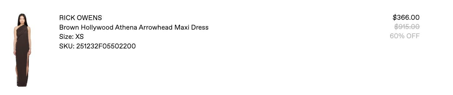 Rick Owens Athena Gown (currently $339 on ssense wtf): If 2024 was all about Rick’s corsets, 2025 was all about his gowns bc we had weddings to attend! Form-fitting and flattering without being too revelatory…Also super comfy.