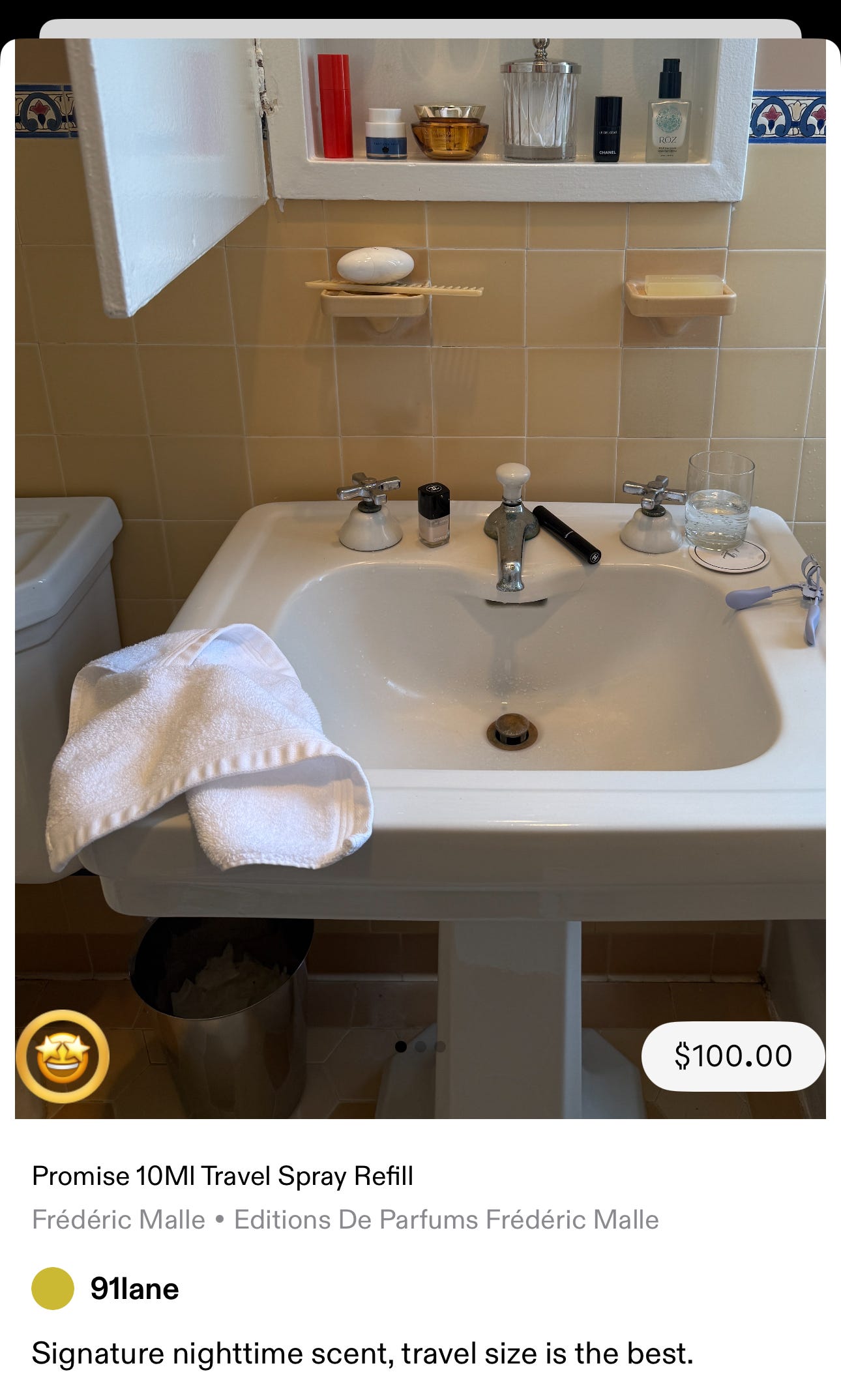 Laura: Unnamed by Byredo became my signature scent in 2019. It’s unbranded and complex to describe, which makes it feel like a blank slate for whatever mood I’m in. The scent was limited edition—I still have a bottle that I use sparingly, for the rare moments that feel worth naming. For nighttime, I reach for Promise by Frédéric Malle. It’s my other side showing up after dark. I’m a Gemini, if that explains anything. I love a concentrated oil as my scent for every day.