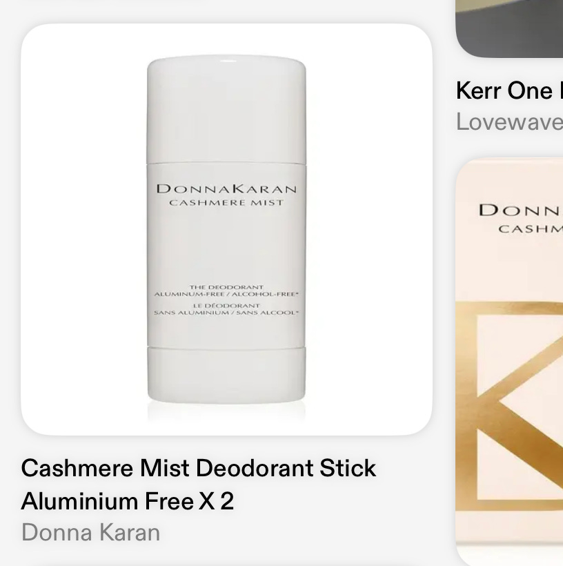 Carson: I buy the Donna Karan Cashmere Mist deodorant stick on repeat.
