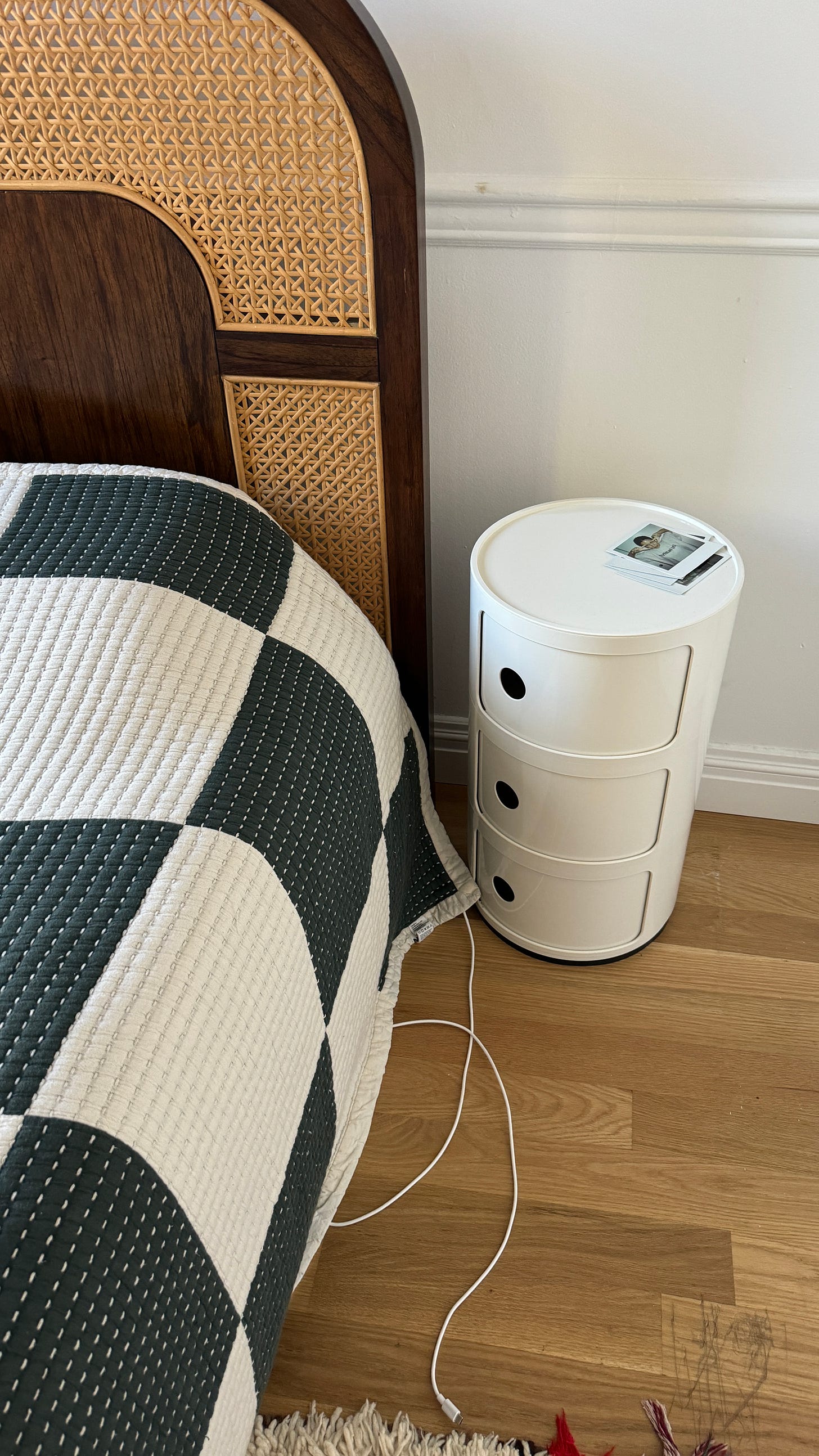 @kareem of @subwaytakes / Kartell White Componibili (on sale!): “I needed nightstands that were not too expensive, not too heavy, and very durable. I hate assembling furniture so this seemed like a great option and if I ever decide to get different nightstands I am sure these things will come in handy in my kitchen or my office!"