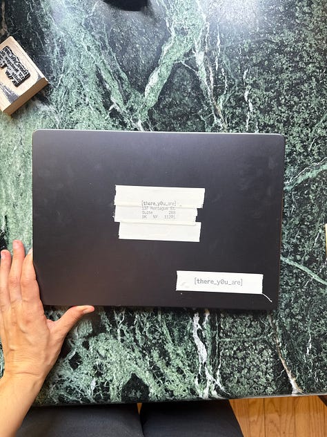 @there_y0u_are (commercial director, design consultant, behind Substack, apartment featured in AD) / Custom Wood Stamps: “I ordered a few custom stamps with my return address, logo, and wordmark on it. I'm having so much fun stamping shipments (that's why I bought them in the first place), but also stamping painter's tape that I'm sticking on my laptop, business cards, fridge magnets....Might be the start of a stamp collection.”