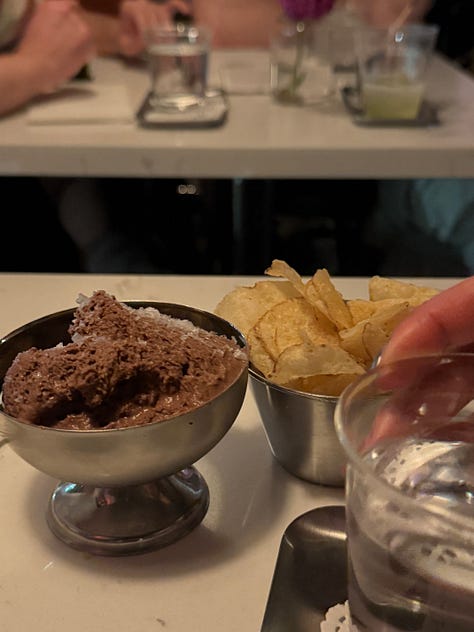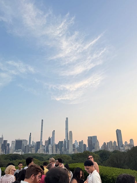 Row 2: Summer nights at the (Met) museum are slept on — live music, rooftop views, gallery crawl before your Uptown food crawl (or Bemelmans visit, stack live music on live music). Claire & Anna Delvey summer mode RabbitGate edition. Schmuck’s chocolate mousse + chips + Graza olive oil combo is not to be missed (oh and their Bread & Tomatoes drink, which is fineee but tbf it’s a bootleg version of Martiny’s Caprese and Clemente’s Tomatino…).