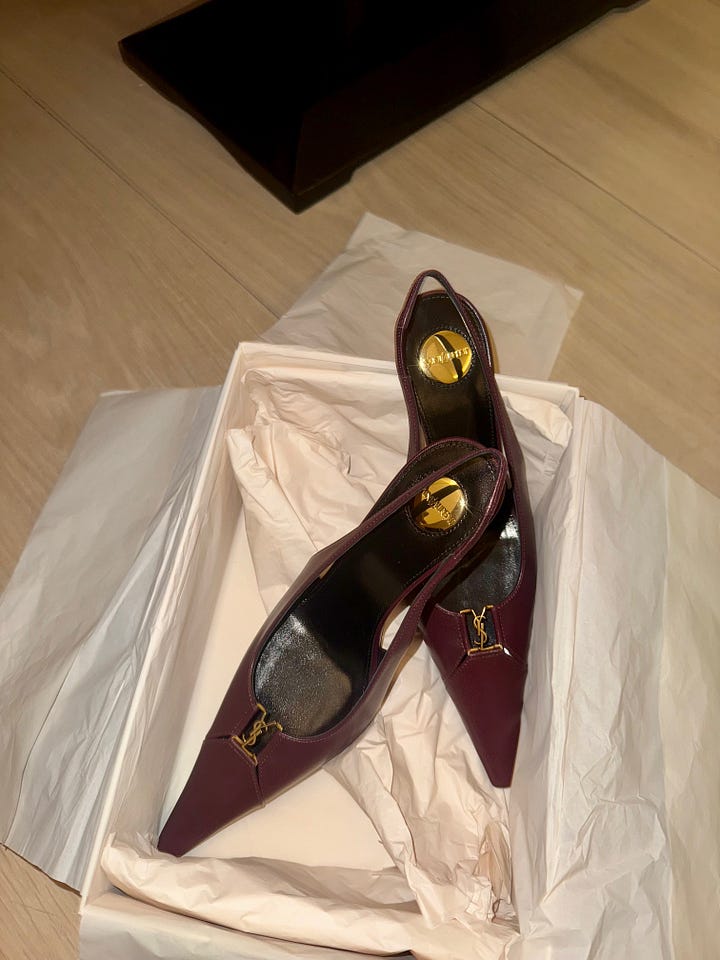 @julia_ransom (interior designer, co-founder of Ransom and Dunn) / YSL Babylone Breteuil Slingbacks: “the most perfect pair of slingbacks by Saint Laurent in a gorgeous brownish Bordeaux, which is weirdly a great neutral I’m looking forward to pairing with grey.”