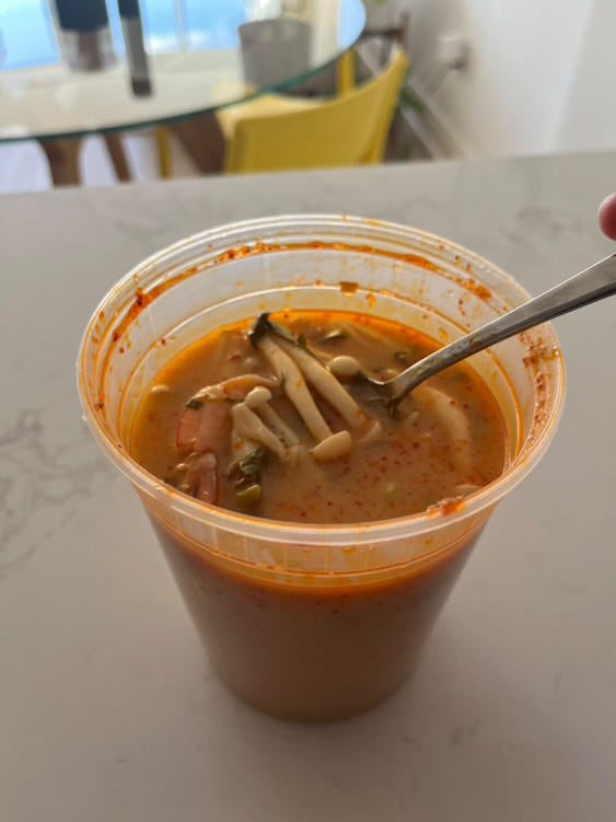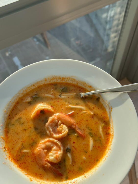 @lucynashsimon (special projects editor @ Food + Wine) / Tom Yum Koong soup from Thai Villa: “You so didn’t ask for this! But in lieu of an okay Diet Coke quote, this is one of my top two soups in nyc!! The Tom Yum Koong from Thai Villa in Flatiron. Ordered in the car home from LGA (veteran move). It’s the perfect combo of sour, spicy, skimpy, and a touch sweet. The quart sized container is certainly worth every cent. I eat half now and save the rest for lunch tomorrow (extra points if I boil some noodles to toss in it, leftover rice works too). Best cure to the post-holiday Sunday scaries!!”