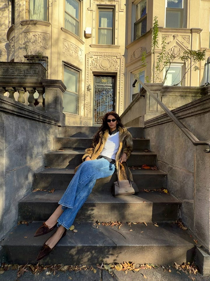 @palakshuregupta (fashion model, launching Homa Aryuveda soon) / Everlane Box Cut Tee: “When the stylist sent over the mood board, she basically said,“ Hi, you need a white tee. Non-negotiable.” Small issue: I… don’t own a white tee. Not even one. Yes, I know. Shocking. So I went on a full TikTok expedition- reviews, hauls, best basics. Then I took myself to SoHo and hit 10 different stores. And finally-FINALLY- found the tee. The one you’re seeing right now. Boxy, clean, perfectly cut. Worth every step of the pilgrimage. It’s the best white tee on the market for the price, and I will defend that statement with my life.”