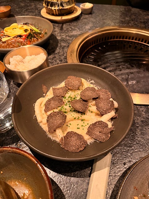 Left-to right, top-to-bottom: Eat your skincare!, this is the best pizza we’ve had in Chicago, ringing in the New Year Korean style, the Korean rendition of cacio e pepe (hint: dduk) at Perilla Steakhouse in Chicago, Birley Bakery upstairs space is lit but pastries are not it, seeing double, talking story at Overstory, back in the jungle, Julien croissant has great construction but too much butter.