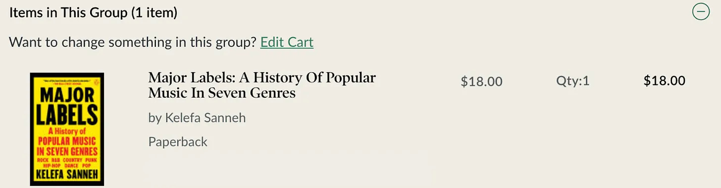 @chrisdallariva (data and personalization @ Audiomack, writes Can’t Get Much Higher) / Major Labels: A History of Popular Music in Seven Genres by Kelefa Sanneh: “Kelefa Sanneh is one of the great music critics of the 21st century. And his recent book, an exhaustive history of seven different genres, is just as great as the criticism that you would read in the New York Times or the New Yorker. In fact, I don’t think I’ve ever read another writer who seems to have such deep command of so many different genres.”